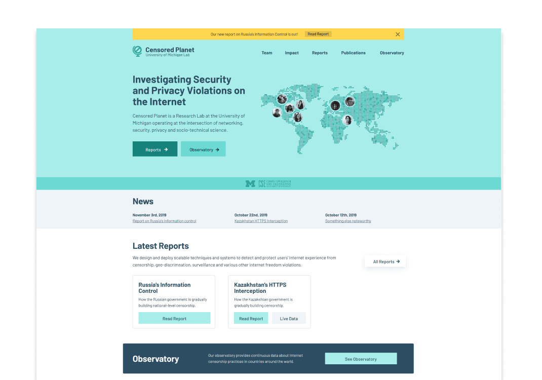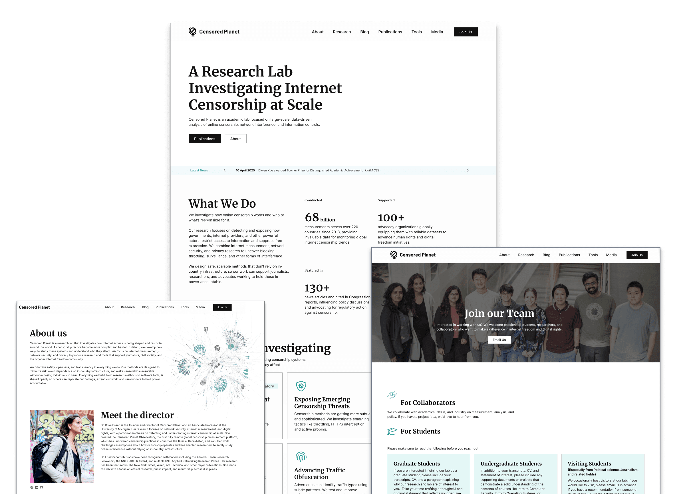 By restructuring the information architecture, the site now communicates the full scope of Censored Planet’s work far more clearly.