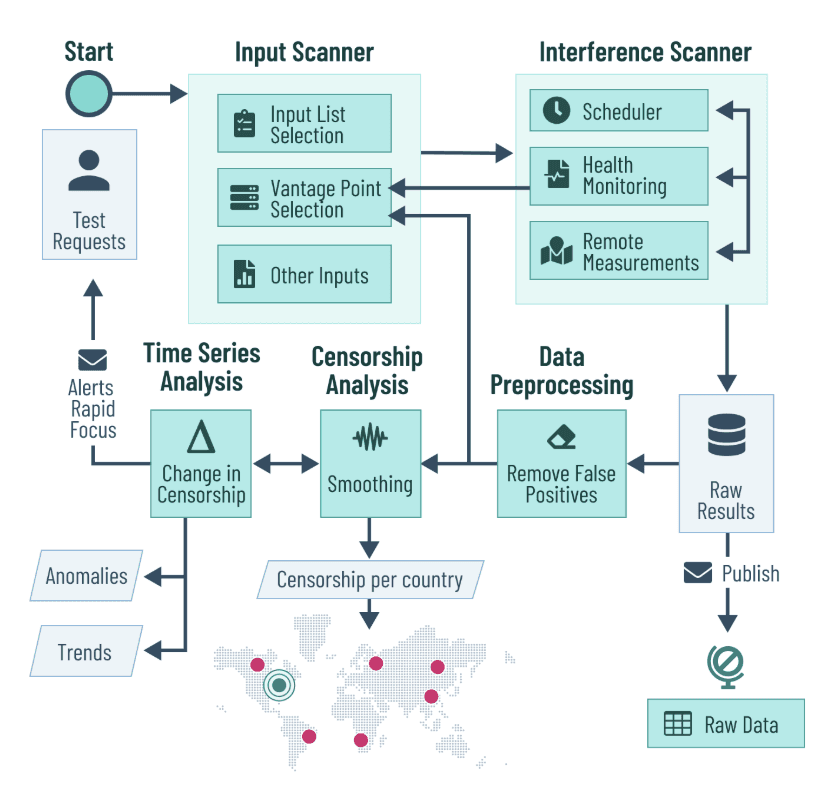Censored Planet investigates internet censorship using large-scale measurement infrastructure. The website had grown around the Observatory measurement platform, even as new initiatives such as VPNAnalyzer and the Internet Splintering Project were introduced.