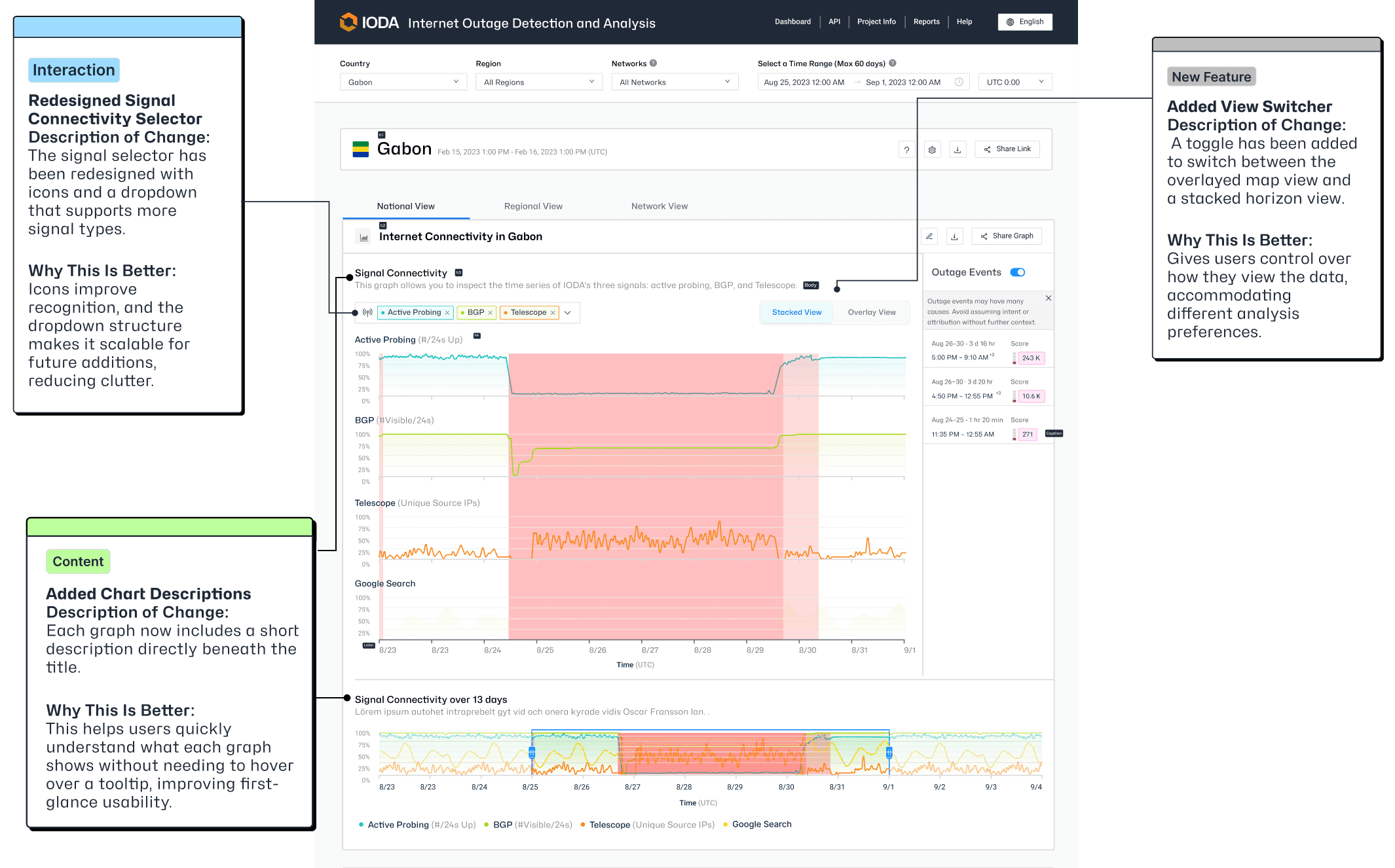 View switcher A toggle was added to let users switch between a stacked and overlayed chart view. Users who want to compare signals side by side can do so, while those looking at trends over time can switch without losing their place.